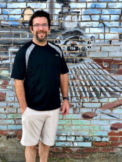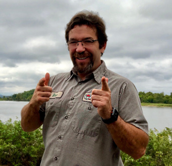 50-year-old Little Rock man, Dean Allen Goodson, attending the Big Dam bridge event in Little Rock. He represents the Giraffe Tree Service where he is founder, owner and president. Dean shares an interesting tree fact: Over a year, a single tree can take as much carbon dioxide as an automobile puts out driving more than 25,000 miles.